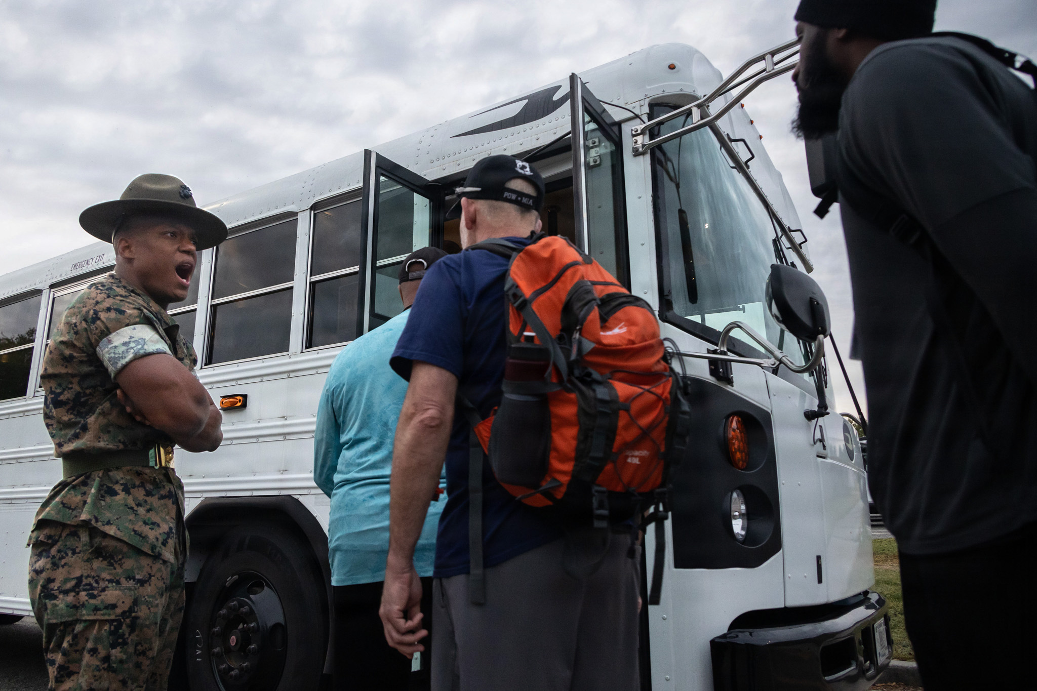 U.S. Marine Corps Staff Sgt. Mustafa Meyers , a drill instructor with 1st Battalion, Alpha Company instructs educators during educators workshop at Marine Corps Recruit Depot Parris Island, South Carolina, April 1, 2026. Educators workshop provides an opportunity for high school teachers and school administrators to experience and gain insight into some of the challenges recruits face during Marine Corps recruit training. Attendees of the workshop can inform their students about the benefits and opportunities the Marine Corps can provide. (U.S. Marine Corps photo by Cpl. Allegra Catalan-Dyson).